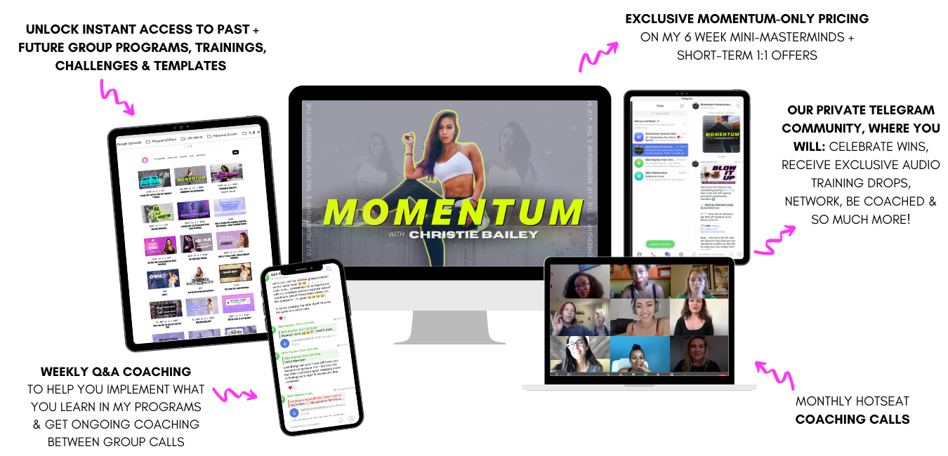 When you join of MOMENTUM, you get access to exclusive coaching + benefits that I offer NOWHERE else.